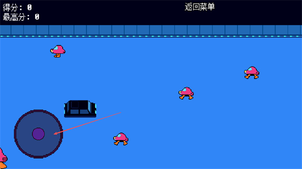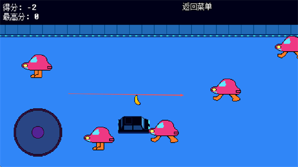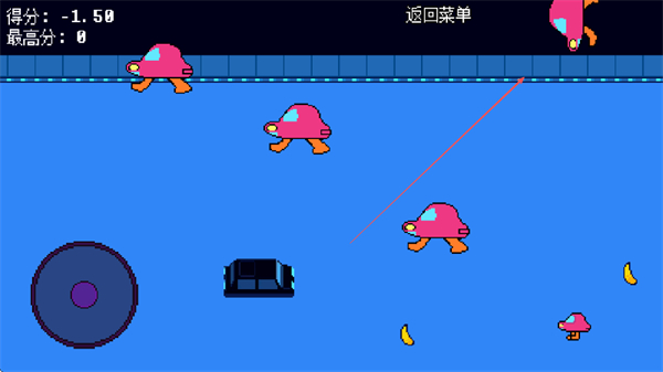 1、用左侧圆形摇杆操控黑色物体、躲避粉色蘑菇敌人、收集香蕉增分、别被敌人碰到扣分。