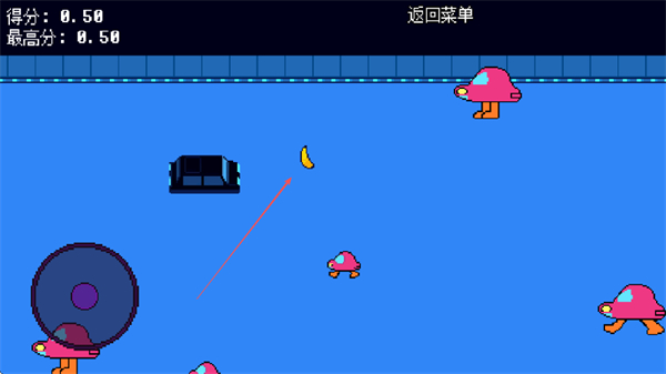 4、按照红色箭头要收集香蕉,收香蕉加分、防止敌人接触。