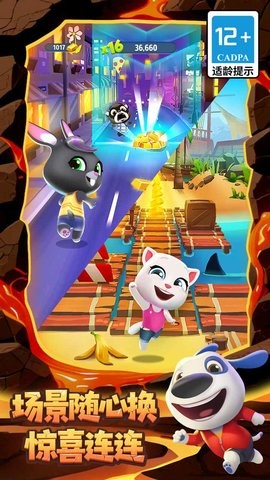2、汤姆猫跑酷手游拥有9个特色地图,包括城镇、海滨、公路、森林、遗迹等,部分地图还会出现新的障碍物和道具。