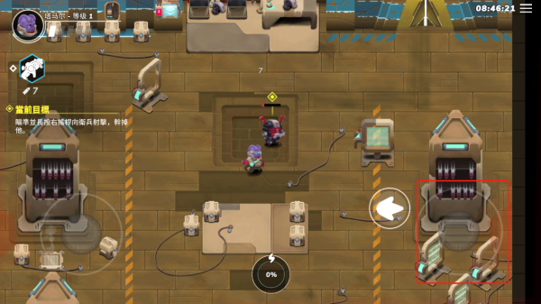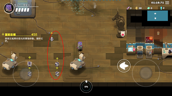 5.当我们拾取武器之后,游戏界面右侧的圆盘即可派上用场了,点击可以发射子弹攻击,滑动可以调整攻击方向。