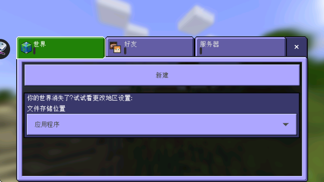 3.进入“游戏”板块的“世界”界面,可选择“新建”世界,也可在“文件存储位置”下拉菜单中调整游戏数据的存储路径。