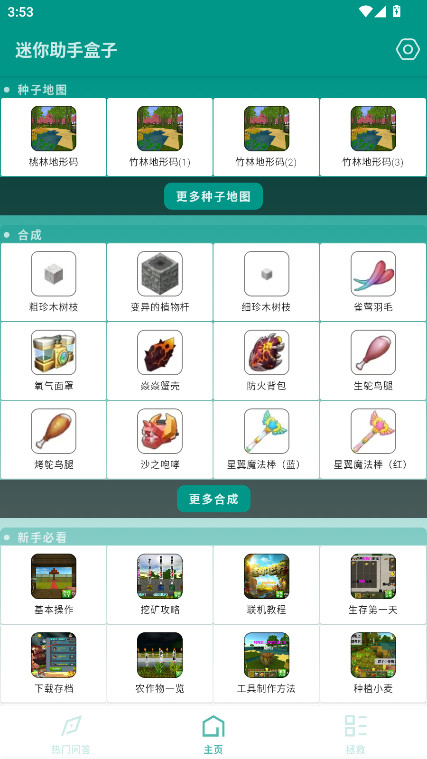 5、进入【主页】频道,包括种子地图、合成和新手必看栏目