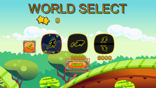 2、接着,在世界选择界面选择一个关卡并点击“SHOP”按钮进入商店购买道具。