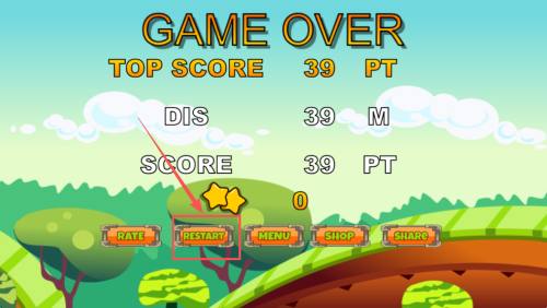 4、最后,如果游戏结束,点击“RESTART”按钮重新开始当前关卡。