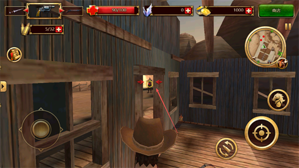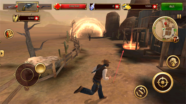 1、操控牛仔在西部场景移动,躲避火焰陷阱,根据地图指引前往任务区域。