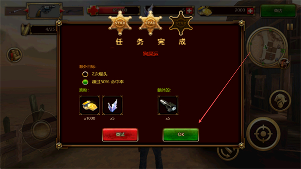 4、任务完成后,点击OK按钮领取奖励,获取金币、道具等,提升角色战力。