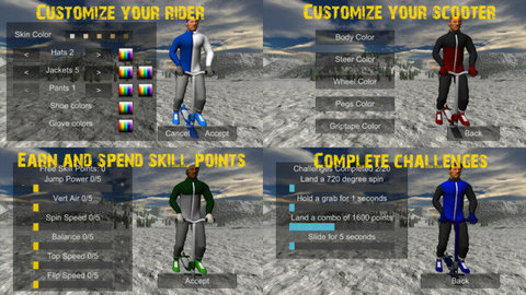 3、控制你的角色,施展一系列刺激的技能,成为雪地上最酷的滑雪明星,喜欢的玩家快来进行下载吧。