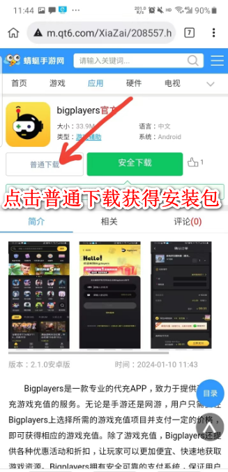 1.先在我们网站搜索bigplayers,并进入页面点击普通下载获取安装包。