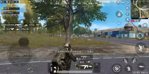 游戏的默认操作模式就是二指操作,一般近战时左手大拇指负责移动,右手负责开火,说起来好像很简单,但右手其实还负责着瞄准+压枪。前面提到了,正常操作应该进行预瞄,做到先瞄准后开枪,而反打或近身时很难有这么冷静头脑。一般被偷袭的时候都是拼命想比对方先把子弹打空,掉血和枪声带来的紧迫感让玩家不敢慢慢瞄准。所以二指玩家先开火后瞄准的场景会比较多。