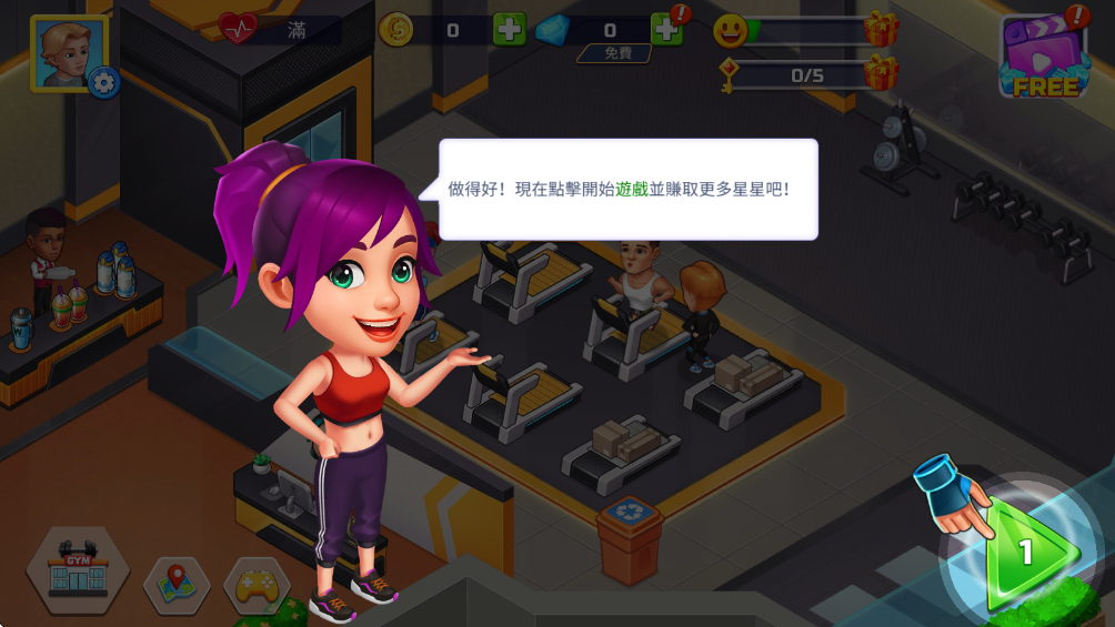 快乐健身是一款集健身房经营、设计与模拟管理于一体的休闲游戏,你将扮演一名健身房老板,从一个简单的健身房起步,逐步发展壮大,最终成为一名健身帝国的掌舵人。游戏中的客户有不同的健身需求,从减肥到增肌,每一个健身计划都需要你根据个人情况量身定制。你还需要通过招募和培训专业的教练,优化健身房的运营效率,确保每一位客户都能在这里达到最佳效果。