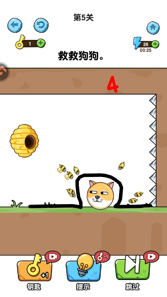 蛰犬蜂潮是一款创意画线解谜手游。玩家需要在屏幕上划出线条作为障碍物,构建一个安全的屏障或庇护所,以保护小狗不被蜂巢中涌出的蜜蜂叮咬。游戏考验玩家的空间想象力、物理原理应用和快速反应能力,需要用最少的墨水和最短的时间,设计出最完美的防御工事,成功度过每一波蜜蜂的攻击。