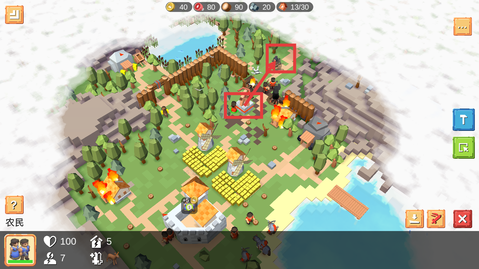 4、派遣【农民】建造防御建筑,抵御强盗攻击,保护村庄资源和建筑,确保发展稳定。
