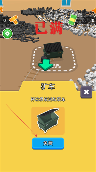3、当垃圾容器显示已满时,按照箭头指示前往垃圾车。