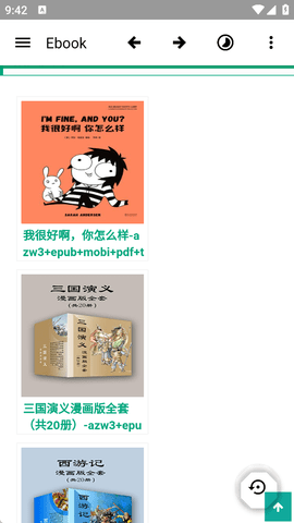 1、打开ebook电子书后在主页能看到大量的书籍内容,选择一本需要书籍。
