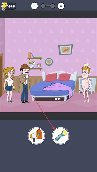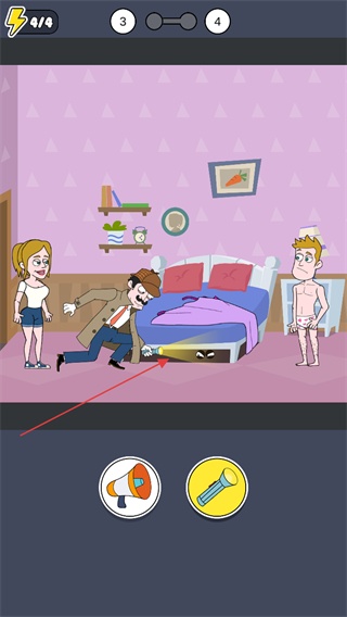 1、在卧室场景中,选择手电筒道具,照射床下,发现隐藏的眼睛图案。