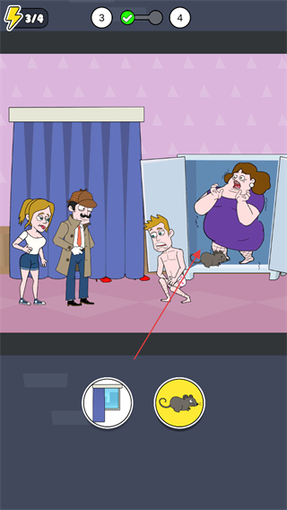 4、放出老鼠,让其进入衣柜,引出隐藏的人物,完成关卡目标。