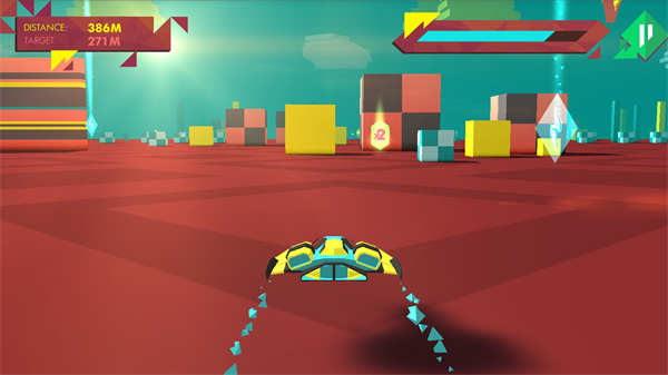 以几何图案构建抽象世界,各类几何物体如同积木般拼接成复杂空间,色彩鲜明且富有视觉冲击力,既营造独特科幻氛围,又让障碍布局充满不确定性。