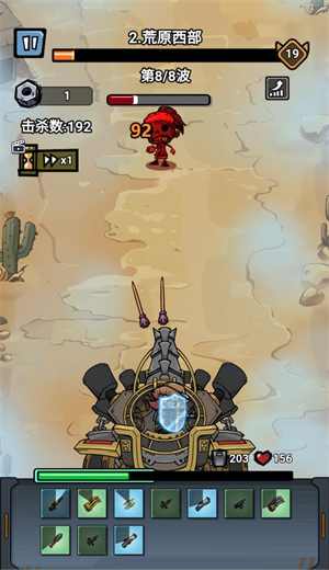 3.放好武器后点击开始开战就可以进行闯关,角色会自动使用武器来攻击敌人,消灭敌人可以获得经验。