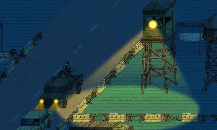 1.在夜间边境关卡,对入境的油罐车进行检查,可点击车辆或相关检查点,启动货物审查流程,查看是否存在走私或违禁品。