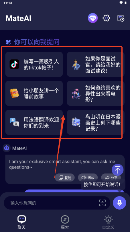 5、通过自定义功能,可以自由选择智能体与我们进行聊天。