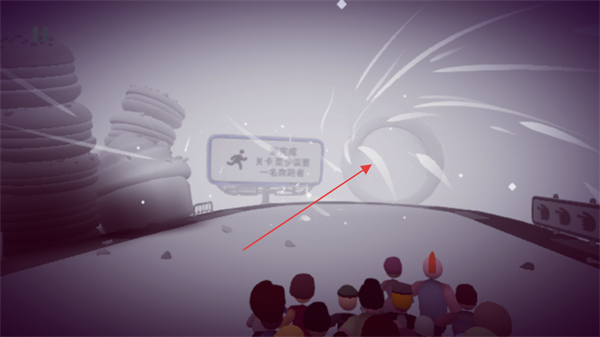 2、带领人群穿过特殊区域如漩涡状通道,触发场景变化,推进游戏进程。