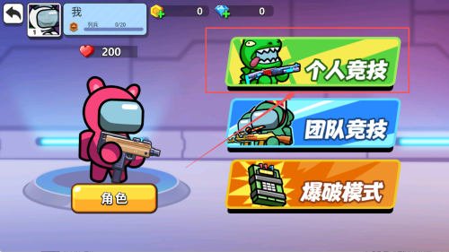 3、如何开始竞技:在角色选择界面,点击“个人竞技”、“团队竞技”或“爆破模式”开始游戏。