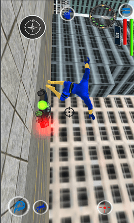 2、驾驶自行车,在城市中追赶敌人,扮演飞行的超级英雄,与超级恶棍作战。