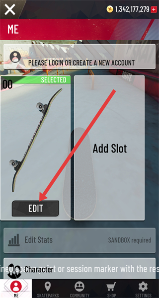 2、个人页面点击“EDIT”,进入滑板编辑界面。