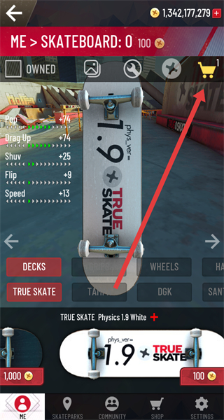 3、滑板编辑界面点击购物车图标,进入购物车页面。