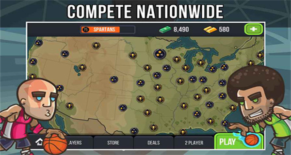篮球战役无限金币钻石是一款街机风格的体育竞技游戏,采用卡通式场景与精简Q版画面,整体简单有爱,以按键操作控制角色移动、投篮等动作,极易上手,搭配依奔跑时间逐渐消耗的体力系统,增添策略性,提供闯关与对战两种模式,闯关场景遍布美国全图,融合流行卡牌玩法并简化数值,模拟真实战报动态,呈现激烈比赛氛围,带来沉浸式竞技体验。