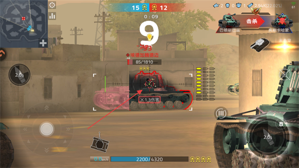 3、利用技能如×1.3伤害强化攻击,快速摧毁敌方坦克如85/1810,提升己方比分。