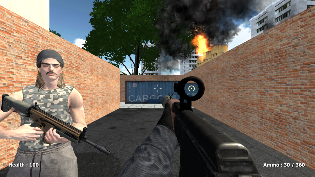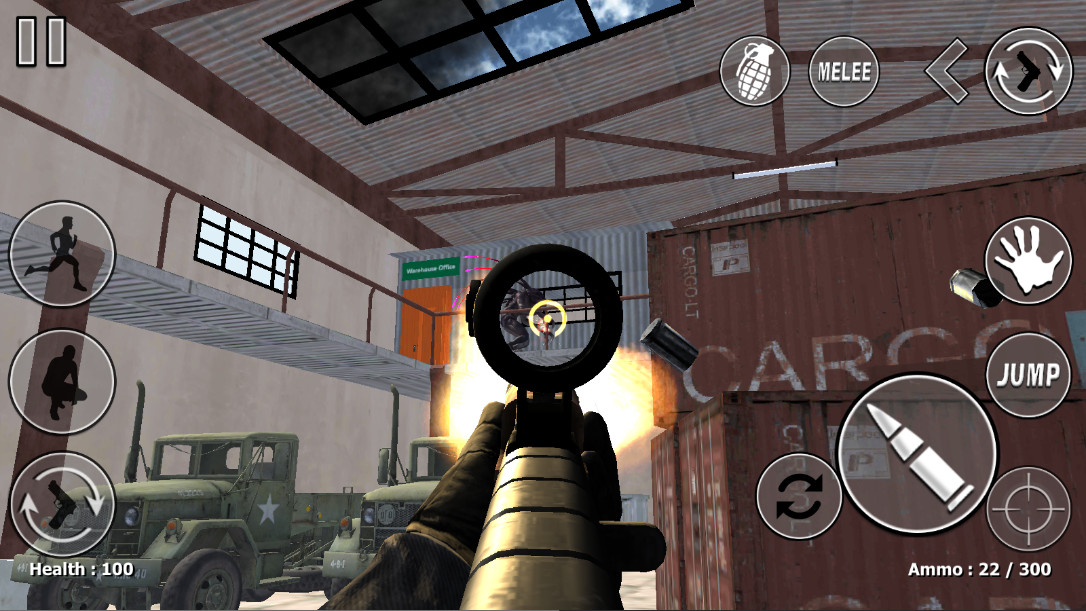 2.进入第一关,控制角色开始移动和射击。
