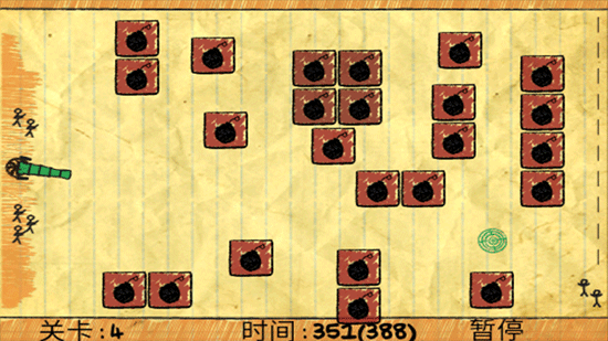 这关也是超级多的炸弹,玩家要将大炮控制在绿色瞄准镜的位置,即可关卡。