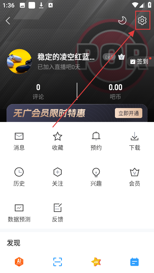 2、进入个人页面后,点击右上角设置按钮,可进入设置页面,调整软件设置哦。