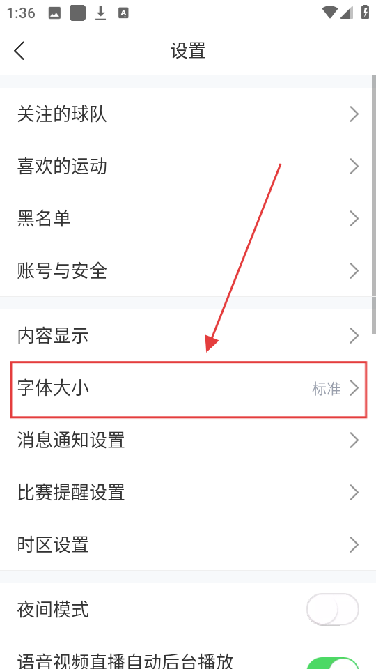 3、在设置页面,点击【字体大小】,可进入字体大小设置页面,选择字体大小啦。