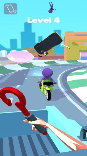 1、聚焦 “公路竞技 + 策略出击”:核心是 “勾车辆、拉倒地、炸目标、护爱车”,将钩子操作与车辆摧毁结合,区别于普通休闲游戏。