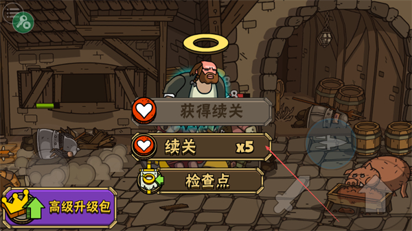 4、战斗失败后可使用续关功能如续关x5继续游戏,或在检查点重新开始,提升战力后再挑战。