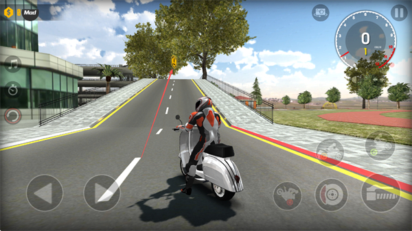 3、关注右上角时速表,控制摩托车速度,在弯道处减速,避免碰撞车辆和障碍物。