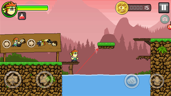 3、跳跃到绿色平台,继续探索新区域,收集金币,避开障碍物。