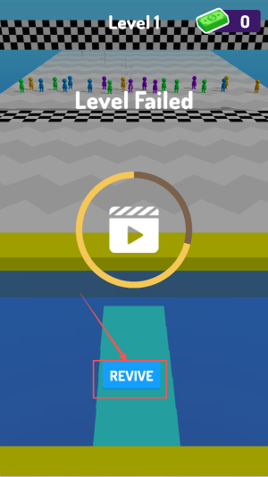 4、最后,若显示「Level Failed」,点击「REVIVE」即可复活继续挑战。