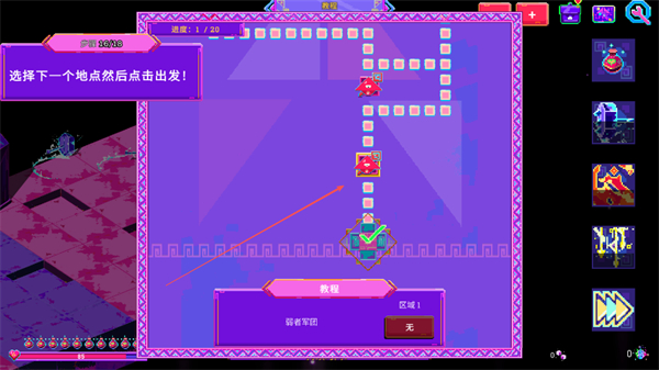 1、在地图界面选择下一个地点,点击出发,前往新区域探索。