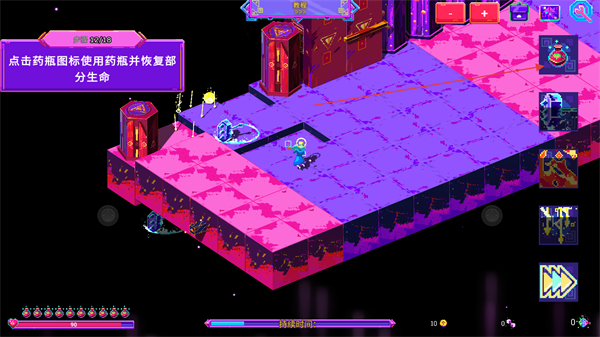 2、点击药瓶图标使用药瓶,恢复部分生命值,保证持续战斗。