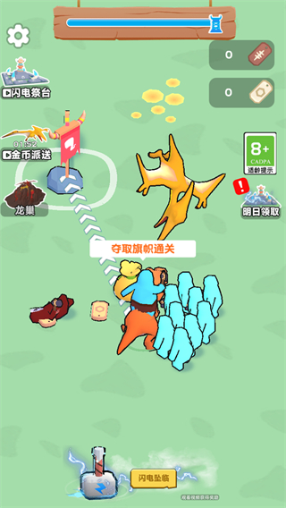 2、击败敌方红色单位,夺取旗帜,扩大己方领地。