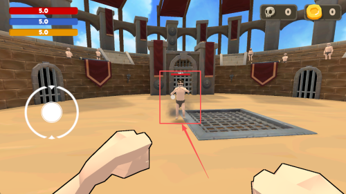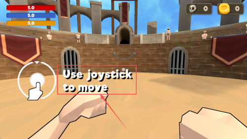 2、如何移动位置:用左下角虚拟摇杆控制角色前后左右移动。