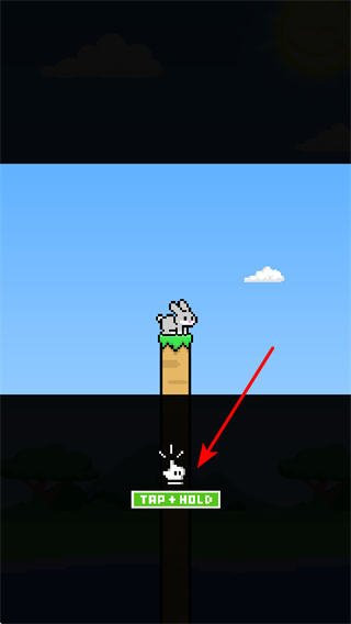 2、在游戏操作提示界面,按照TAP+HOLD提示,点击并按住屏幕,可控制兔子蓄力跳跃,这是掌握兔子跳跃操作的关键步骤。