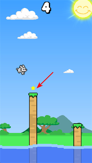 4、紧跟红色箭头指引,操控兔子朝着带有星星的平台跳跃,收集星星可获取游戏分数或奖励,也要注意跳跃的准确性,确保收集。