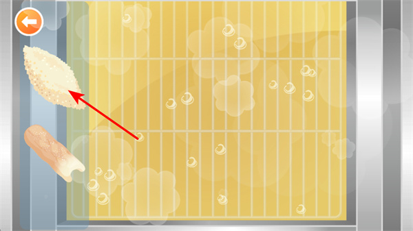 2、在炸制环节,点击裹好面包糠的食材,将其放入油锅中,这是制作炸物的关键步骤,准确操作才能开始食材的炸制过程。