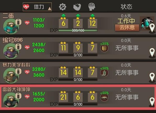 3、幸存者多样:游戏中有多种幸存者,每个幸存者都有自己的特点和能力,玩家需要根据需要招募合适的幸存者,玩家可以通过制造武器和道具来提高自己的实力。