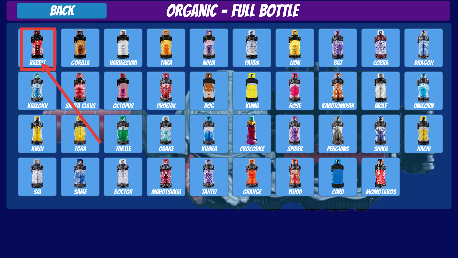 4、将【RABBIT】和【TANK】满瓶插入腰带,点击【CLICK】部件,完成【BEST-MATCH】,触发变身或技能效果。