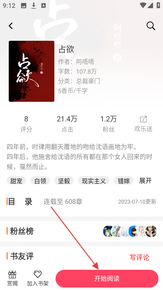 2、进入小说详情页后,点击【开始阅读】,就能沉浸在精彩故事里,超棒哦。